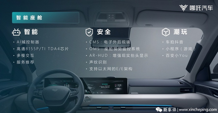 官方信息显示,Eureka 03量产车基于全新架构平台打造,这个平台是哪吒投资20亿所打造。新车配备3颗激光雷达、5颗毫米波雷达、12路超声波、18个摄像头,在下一代域控制器基础上部分场景下可实现L4自动驾驶。这台车同样具备全生命周期OTA软件升级的能力。