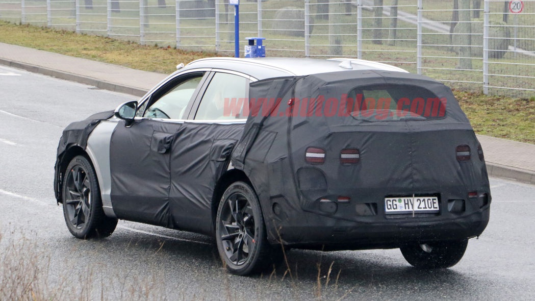 除了这些电动元素之外,这台GV70e测试车的外观和标准版GV70一样,拥有着标志性的双元素灯在前后都能看到。不过车上仍然遍布着大量的伪装,所以Genesis可能会酝酿一些造型细节来将其与汽油发动机车型区分开来。