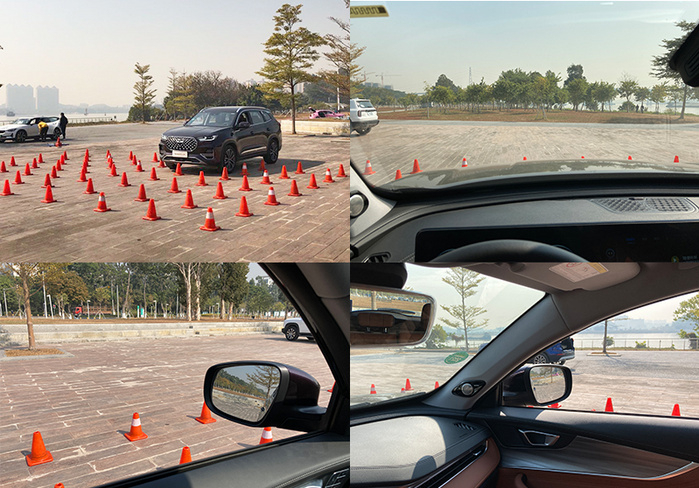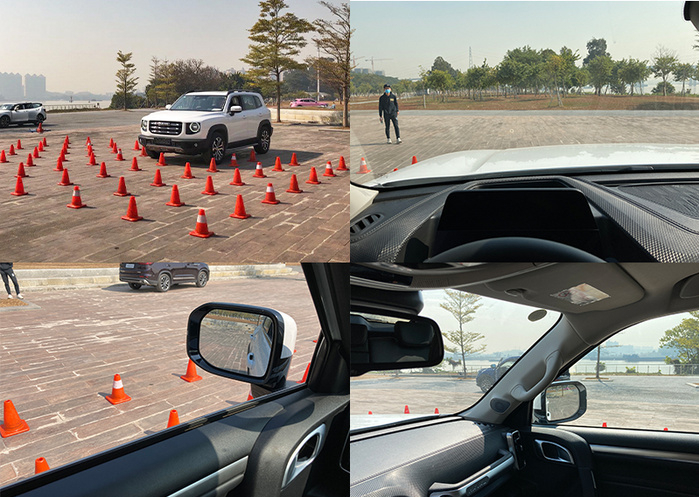 其实在测试前,哈弗大狗在视野上的劣势早就可以预见,类似硬派越野车的设计,方正的车体,又高又平的引擎盖,一坐进车内就能察觉到与现代城市SUV有着很大不一样,包括视野。大狗这样的设定使得车内盲区非常大,前方引擎盖很高,高高的引擎盖甚至能将测试时正前方最远端的桩桶完全挡住。