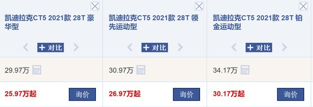 凯迪拉克旗下的车一直以来都以越级、优惠大著称,而凯迪拉克CT5自然也不例外。目前,2021款的凯迪拉克CT5的指导价为27.97—34.17万元,虽然才上市不久,但是网上的公开优惠已达到4万。
