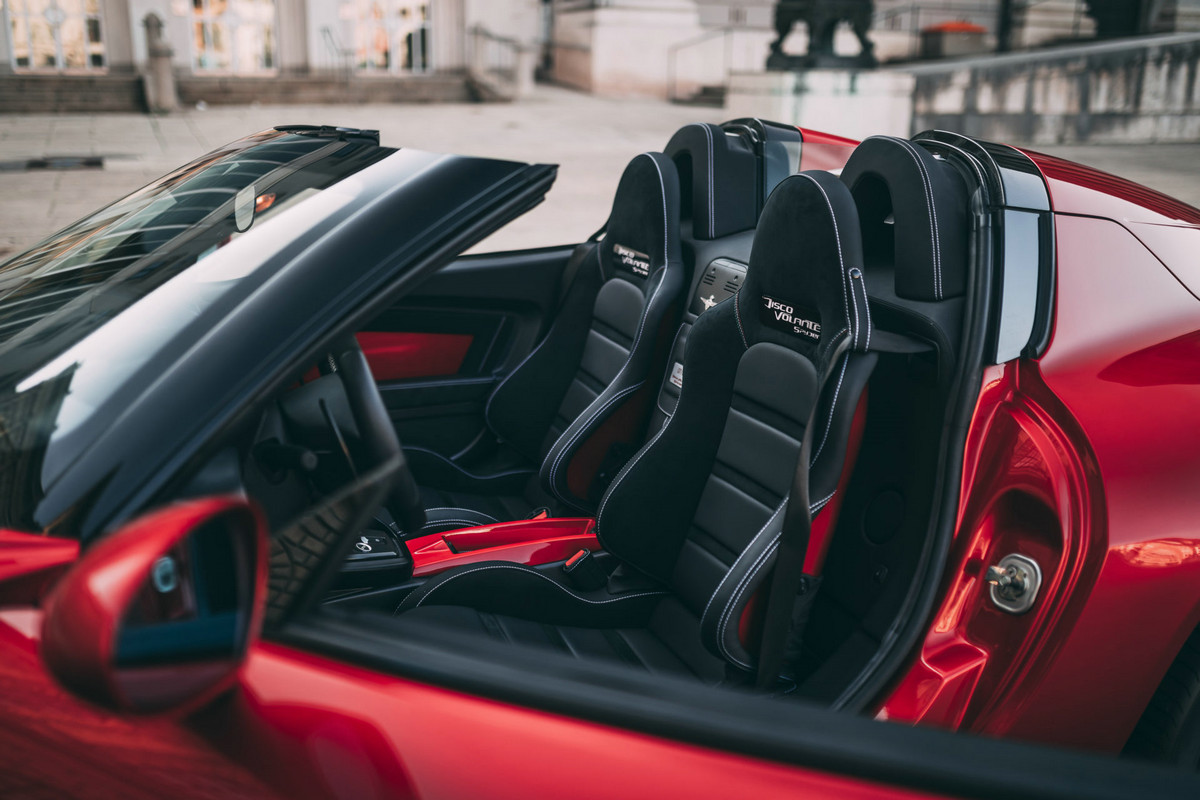 这款车由Auxie Treschmidt挂牌销售,是七款车型中的第七款,另外还生产了八款Coupe车型。它采用了令人惊叹的金属红色,而内饰则由黑色Alcantara和皮革混合包裹,座椅和头枕上有轻微的缝线,一些碳纤维的点缀让这款车更加让人头晕目眩。