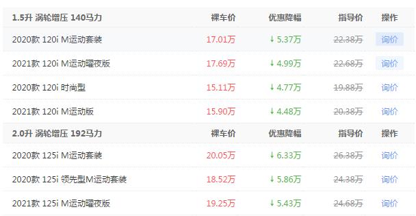 在2020年的销量当中,宝马1系销量为:39243辆,对于宝马1系的价格,相信朋友们不会觉得很贵吧,毕竟,全国各地4S店宝马1系的优惠幅度还是较高的,相较于它家族的其它车型,宝马1系可以说是能够让你花最少的钱,就能圆你宝马梦。