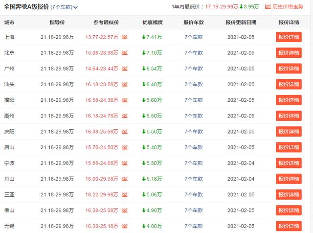 在2020年的销量当中,奔驰A级销量为:68063辆,官方起售价为:21.18万元,或许你会觉得有些贵了,但是,它的优惠幅度还是挺高的,参考全国各地的终端优惠,该车落地价也就10多万,对于心中有一个奔驰梦囊中羞涩的朋友来说,可以说是不二之选。
