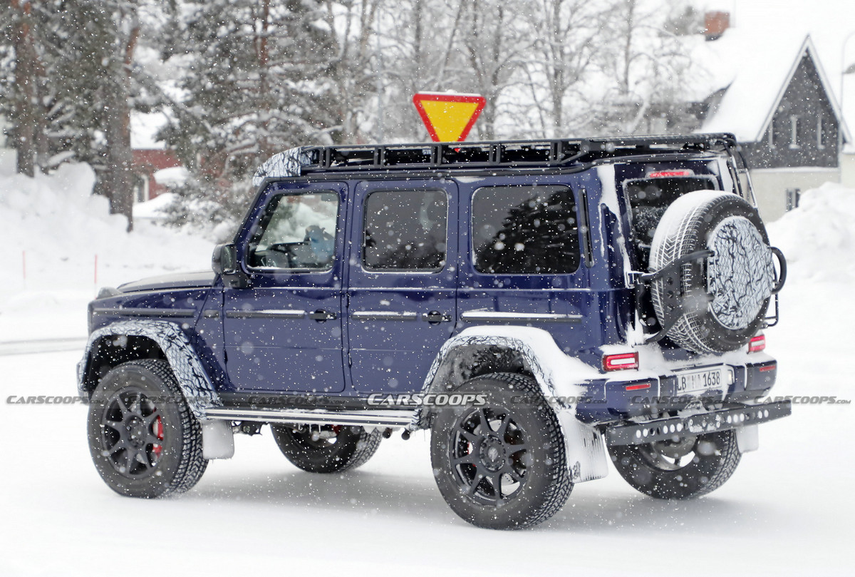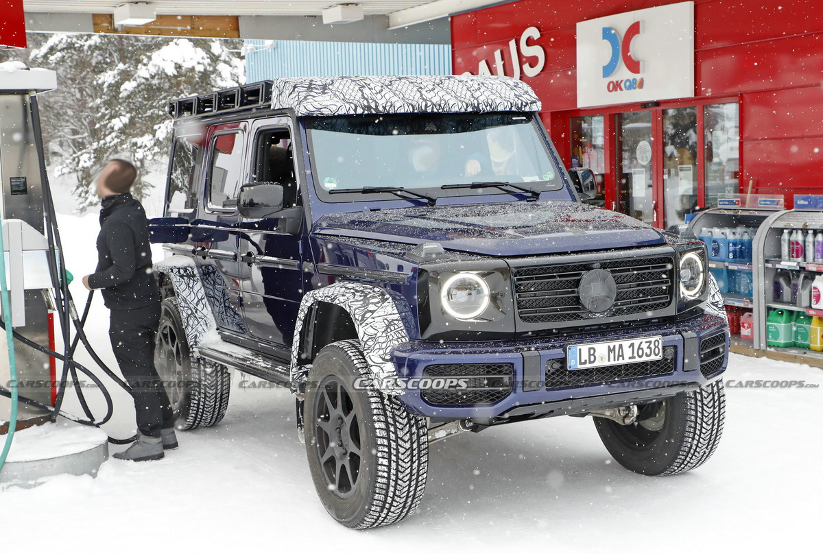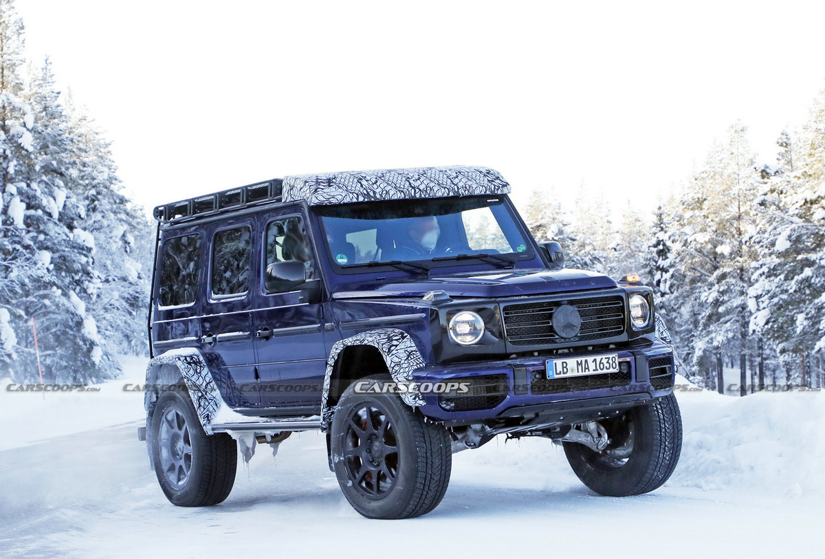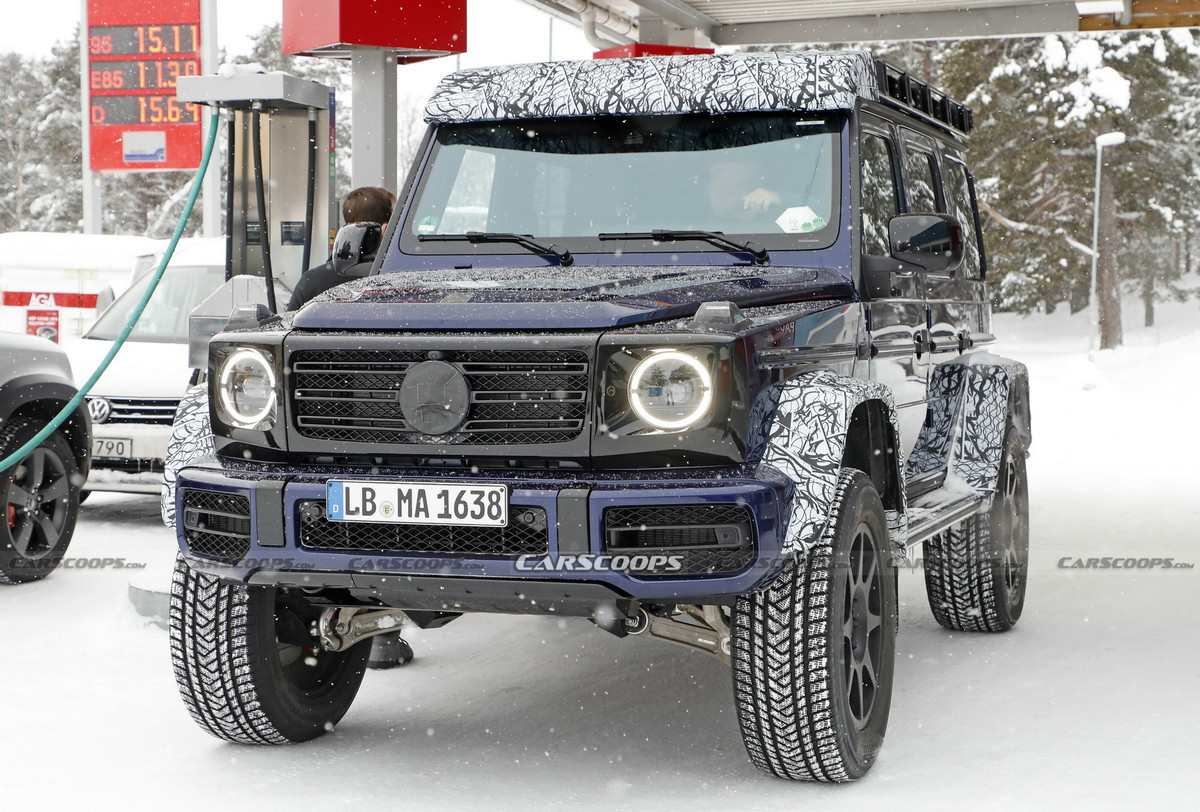 日前,从海外媒体获得一组奔驰G级 (配置|询价)4×4²冬季路试的谍照图。作为已经相当大的G级车的升级版,4×4²是那些从来没有说出 "太多 "这句话的人的越野车。