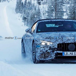软顶敞篷前卫 将搭载V8插混系统 奔驰全新SL级车型雪地谍照曝光