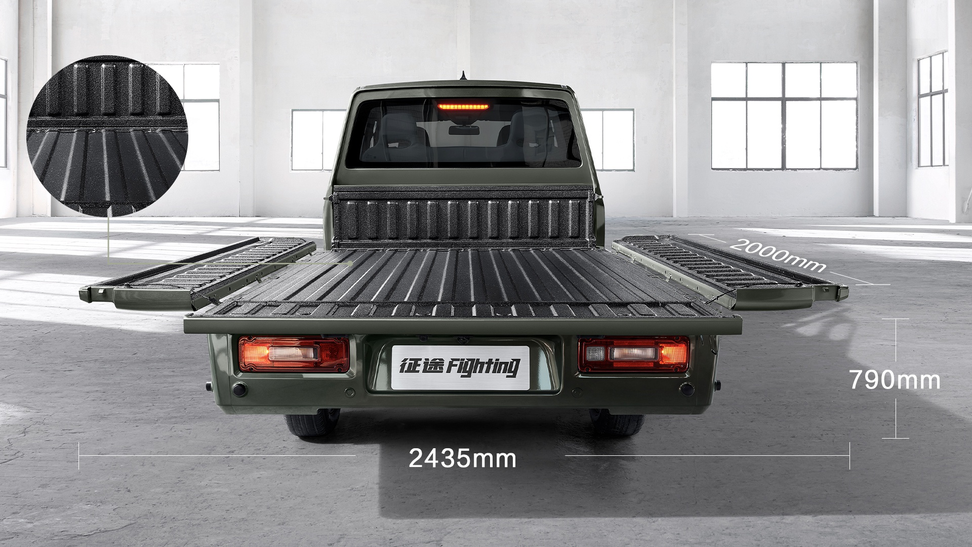 征途后部配备“2米纯平3面开”大货箱,可满足多种使用场景。货箱内部纯平,箱内尺寸为2000mm×1520mm×365mm,车厢内部采用高分子涂层货箱装甲,耐磨防水耐腐蚀,极大地提高了货箱使用寿命。箱内底面离地高度790mm,符合人机工程学更轻松省力。货箱周边配备多个绳钩及尾门拉绳,单个最大可承受3000N拉力,运载物品更稳妥。(撰文/小魔)