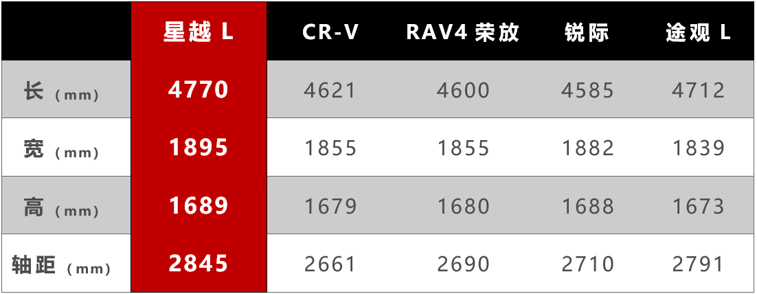 从资料上来看,星越L虽然定位为紧凑型SUV,但其尺寸实则已经摸到了中型SUV的门槛,甚至超过了某些传统合资中型SUV,因此对比大多数主流的合资紧凑型SUV,星越L的优势非常明显,由此带来的空间优势自然也更加值得期待。
