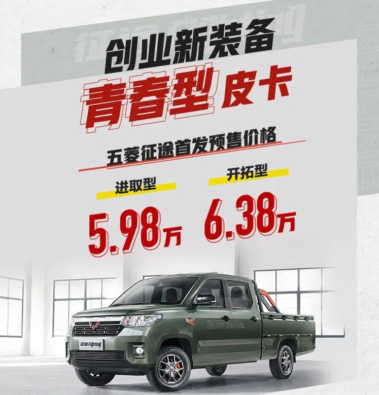 2月22日,我们从上汽通用五菱官方获悉,五菱全新皮卡车型征途正式开启预售,新车共推出进取型和开拓型两款车型,预售价为5.98万-6.38万元。