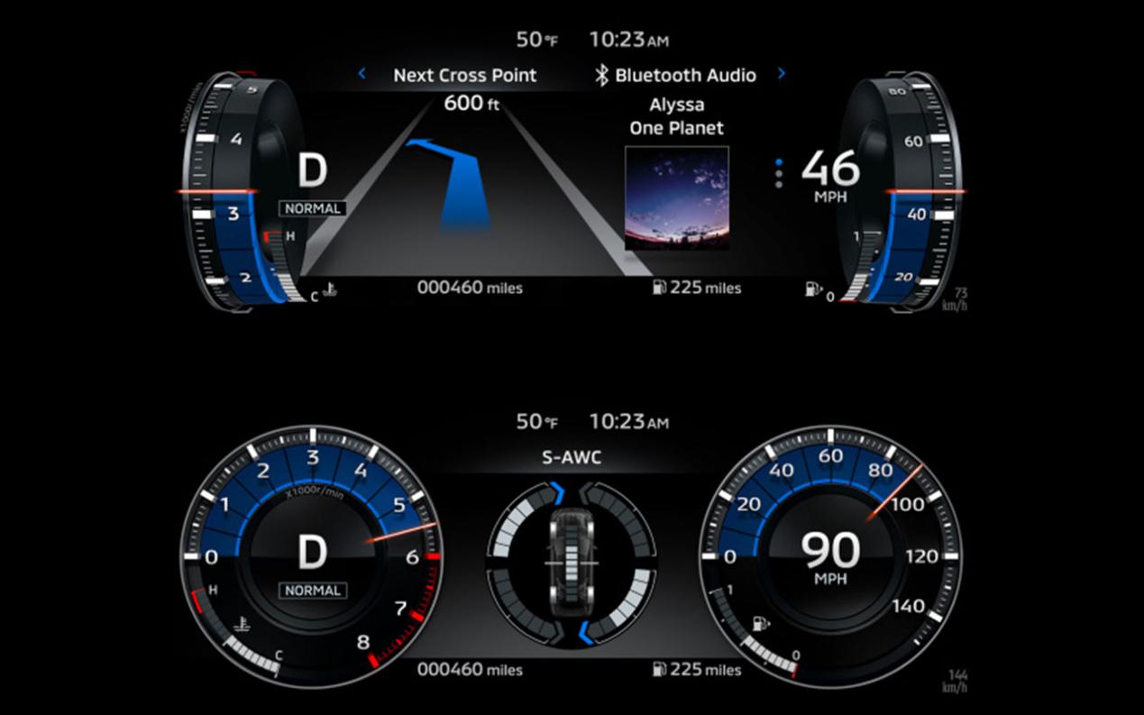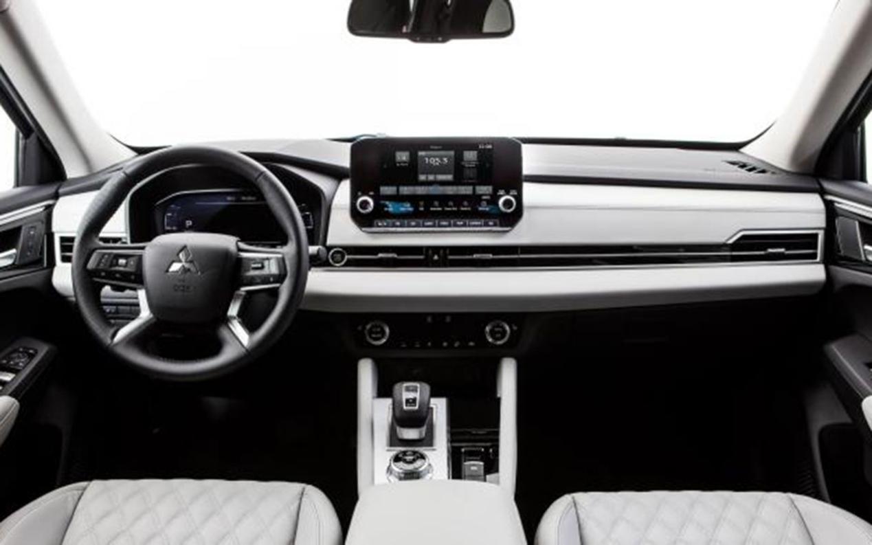 中控台采用了12.3英寸全液晶仪表盘和9英寸悬浮式中控屏的设计,功能十分齐全,而且三菱还为其首次采用了10.8英寸的平视显示器(HUD)。