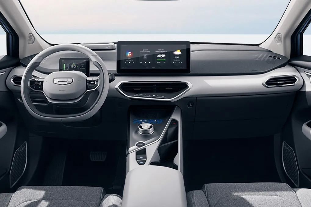 几何C的车内也延续了家族式的极简设计风格,取消了大量实体按键,再搭配上银色、灰色和黑色相间的涂装,视觉感受十分舒服。作为纯电动车,几何C在科技感上也有着不错的表现,双辐式多功能方向盘、5英寸全液晶仪表盘、HUD投影式数字平显系统、12.3英寸悬浮式中控屏,再加上GKUI吉客智能生态系统加持,你想得到的想不到的,几何C在智能化科技配置上都能满足你。
