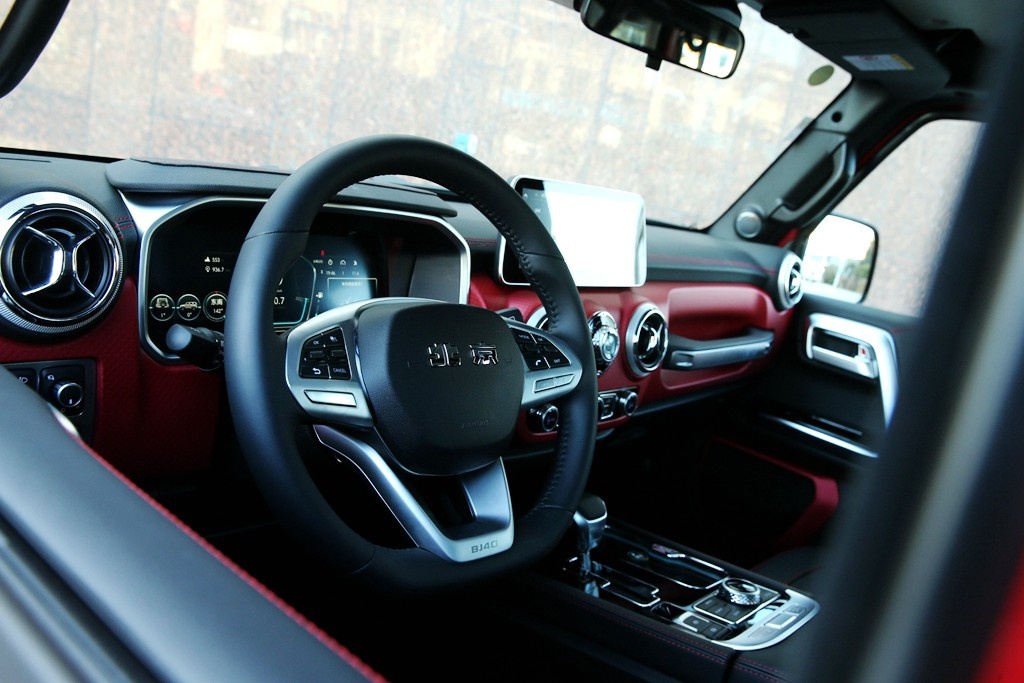 不得不说,作为一款更注重非铺装路面表现的硬派越野车来说,BJ40刀锋英雄版的内饰在同级别中称得上“豪华”二字来形容。