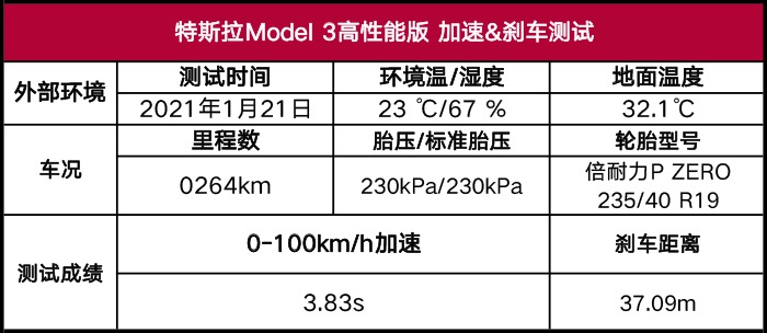 (特斯拉Model3高性能版 100—0km/h制动成绩:37.09m)