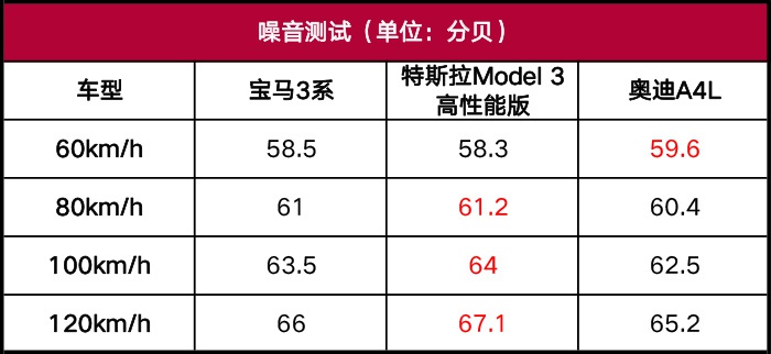 在此之前,我们也已经对特斯拉Model 3的噪音进行了深度体验,老实说NVH水平难以令人满意。或许是因为新一批车型在造车工艺上有所精进,又或者是隔音材质有了提升,在特斯拉Model 3高性能版车型上,能够感觉到噪音的NVH控制水平已经好了不少,在时速100km/h的情况下分贝值仅为64dB。