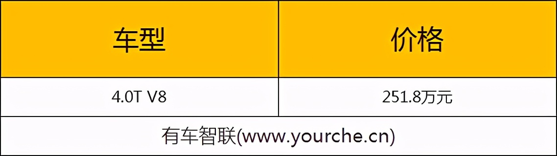 日前,宾利官方正式公布了飞驰 (配置|询价)V8版本车型在国内市场的售价,新车共推出一款车型,售价为251.8万元。外观上,新车加入了大量黑色装饰,让其看上去更加动感。动力上,新车搭载一台4.0升V8发动机,0-100公里/小时加速所需时间为4.1秒。