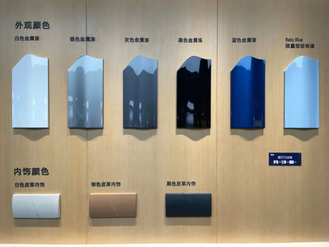 车身6色可选,除Baby Blue+10000元外,其他颜色选配免费。好评。注:Baby Blue珍珠漆为韩寒墙裂要求李想老板增加的配色,拔特,他自己的车并没有选配。内饰皮革三色可选,选配免费,好评。