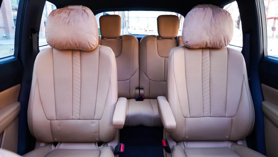 内饰选配的棕色及6座布局,头枕好评,超级舒服,据说是和迈巴赫同款。