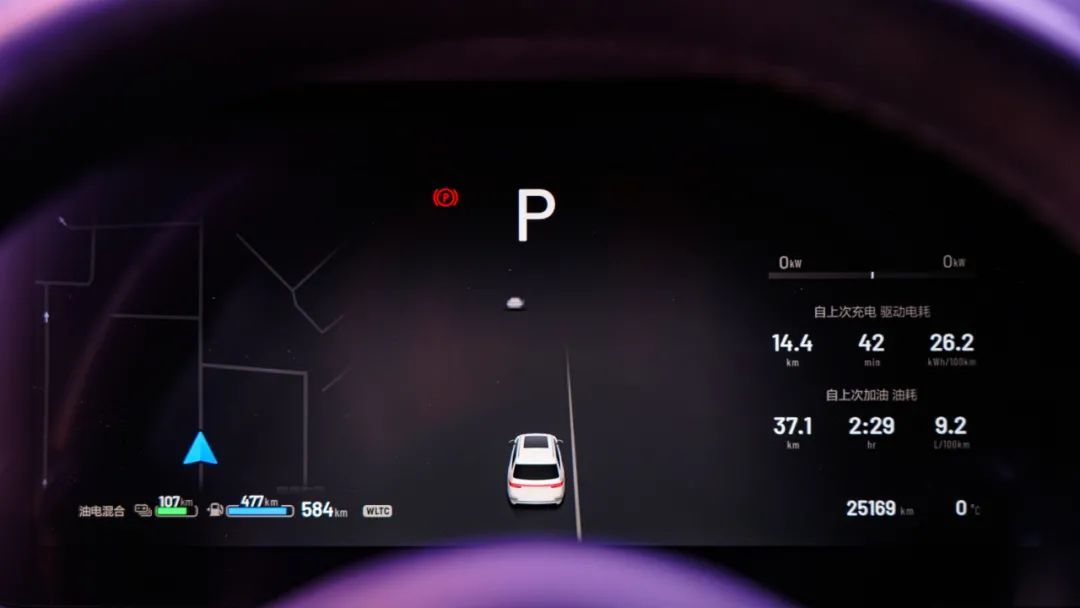 主驾屏幕展示行车信息,辅助驾驶,档位、灯光、时速固定展示,导航、能耗、媒体播放器,胎压天气等可自定义设置展示。