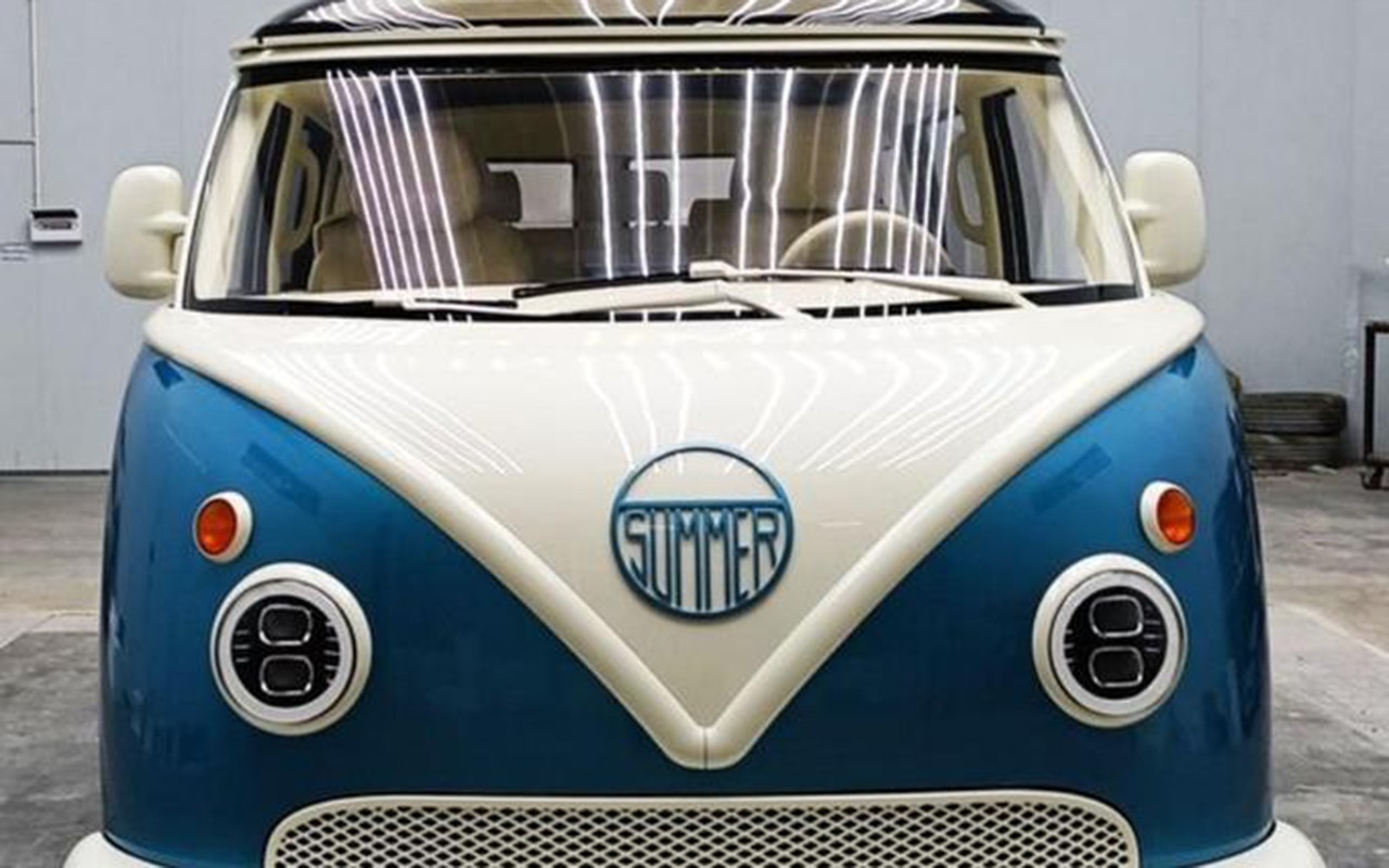 外观部分,新车复刻了大众T1的经典造型,整体的设计上非常的可爱。前脸部分的圆形大灯加上双色的车身使其有很强的辨识度。车身侧面新车将采用侧滑门的设计,轮毂造型也十分复古,此外新车车顶配备了升顶机构,能给车内带来更宽裕的空间。车尾部分采用经典的对开尾门设计,裸露的铰链体现了机械美感。