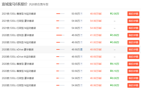 价格上,5系的指导价是42.69-54.99万,相比奔驰E级还要略微贵一些。不过现在5系有优惠,所以参考最低价来到了37.00-54.99万区间,最高优惠幅度可达8万,最低优惠也有5万多,对于那些想买这台车的人来说,宝马5系显然也是不可错过的。至于不足,5系存在内饰异味大、胎噪大、储物空间小、储物空间设计不合理等问题,望厂家能够加以改善。