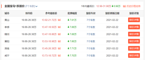好在的是,如今的宝马1系拥有不错的优惠力度。我们从车主之家网站了解到,指导价20.38-24.68万元的宝马1系目前参考最低价已经来到了13.92-21.72万元,最高优惠来到了7.91万,最低配仅需13.92万就能够入手,整体性价比可以说是很高了。不足的话,1系普遍存在胎噪大、车内隔音效果不好、转向轻重不合理、内饰异味大等问题。年轻人可能会崇尚宝马的蓝天白云标,更何况现在的1系便宜到唾手可得,所以你会选择入手1系吗?