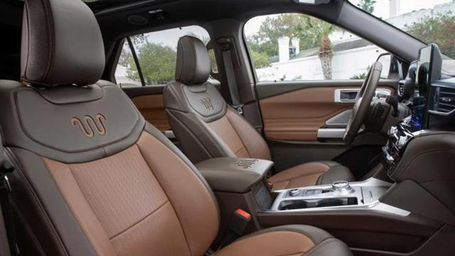福特探险者自从以进口方式进入国内,获得不少消费者喜爱,产品力和销量都不错。近日,国外探险者推出一款特别版车型,2021款探险者King Ranch版,新车将在今年春季上市,四驱版售价54350美元,换算成人民币35万元。最关注的动力部分搭载了3.0T涡轮增压V6发动机,最大功率365马力,有后驱和四驱2个版本。从新发布的官图看,新车对前格栅进行调整,配备"King Ranch"和"W型"标识。内饰用了很多皮革材质包裹、带纹理的木纹饰板,搭载10.1英寸触摸屏、带有14个扬声器的Bang&Olufsen音响系统。