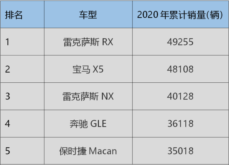 其次是SUV领域的雷克萨斯RX (配置|询价)和NX,两台车分别在2020年里贡献了49255辆新车和40128辆新车的销量数据,合起来也斩获了近10万辆的销量。