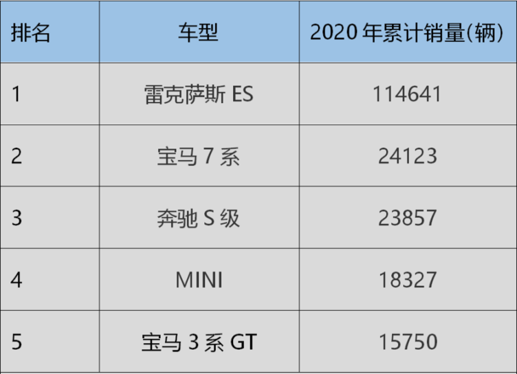 其中,雷克萨斯ES (配置|询价)凭借超过114641辆的销量成绩勇夺进口轿车销量第一,比后面四名加起来的总销量还要高。