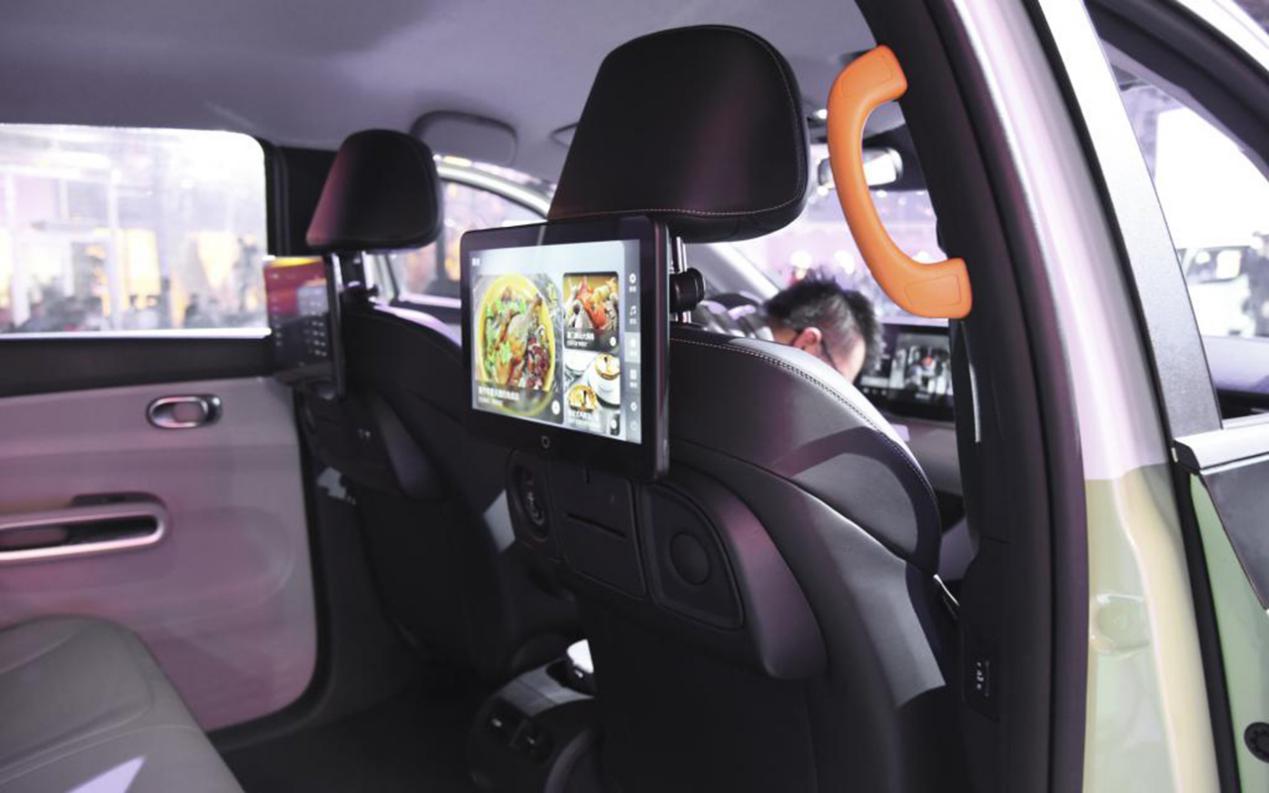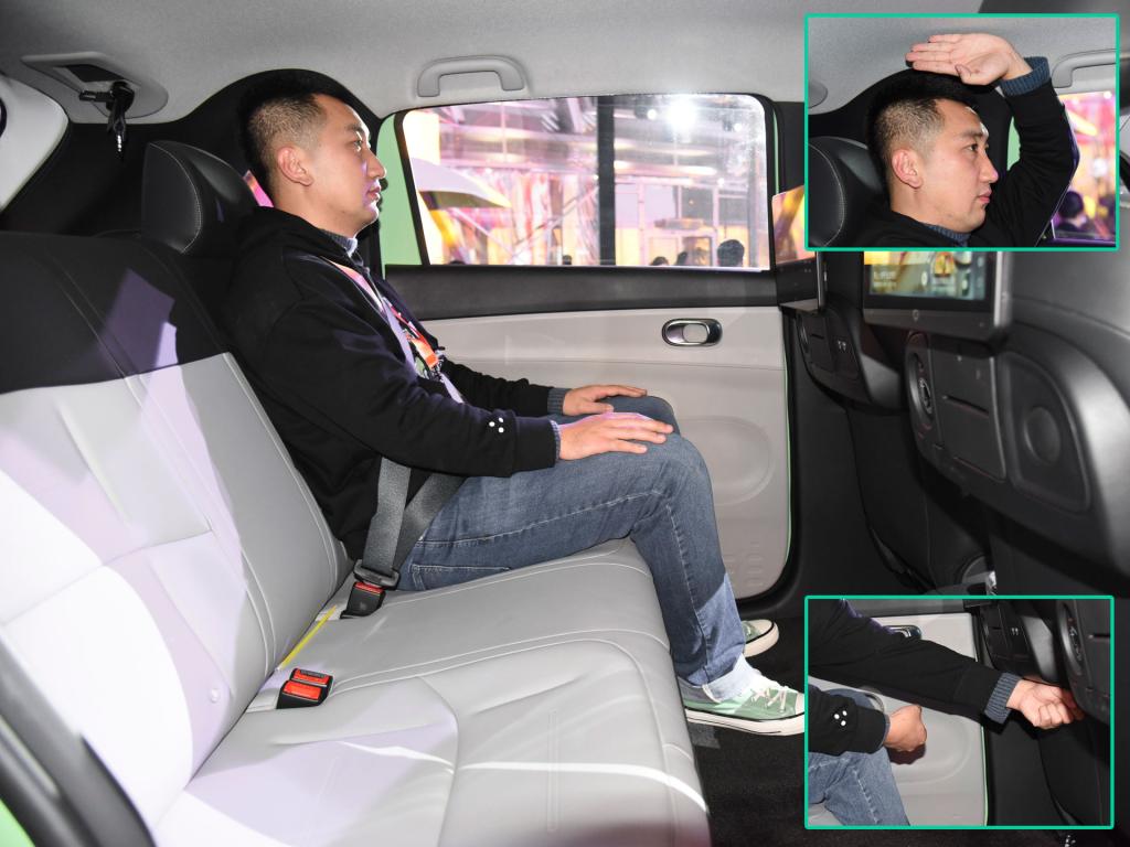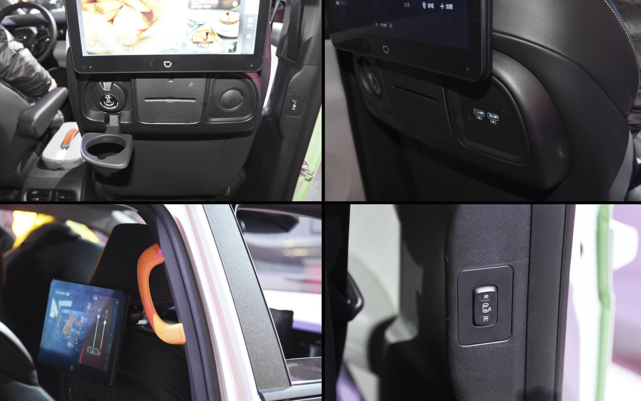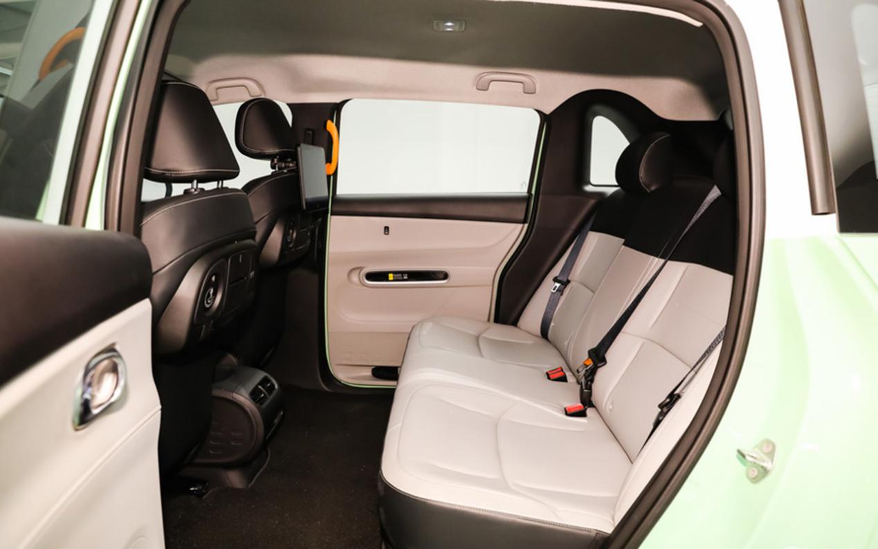 来到后排,这台比亚迪D1在乘坐空间、舒适性以及功能丰富度上都值得点赞。首先是配置,这台D1不仅配备了空调出风口、座椅加热、两个Type-C充电接口等功能,还提供了两块液晶显示屏供乘客观看使用。其中屏幕内不仅支持在线观看视频,还可在线K歌,这可就真的是让乘客尽享休闲时光了。