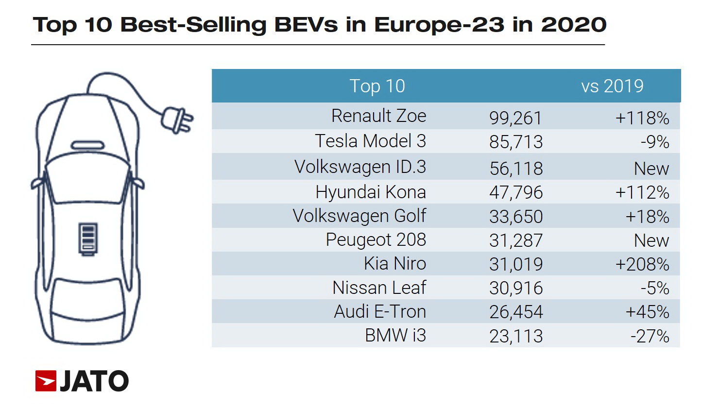 从57.5万辆的销量增长到了142万辆,在2020年欧洲汽车总销量中占比达到12%。这还是在欧洲新冠病毒(Covid-19)大流行的时期完成的销售成绩。