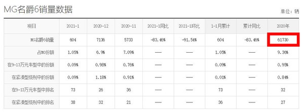 回顾2020年,风头正盛的名爵6还能交出一份61730辆新车的销量成绩单。