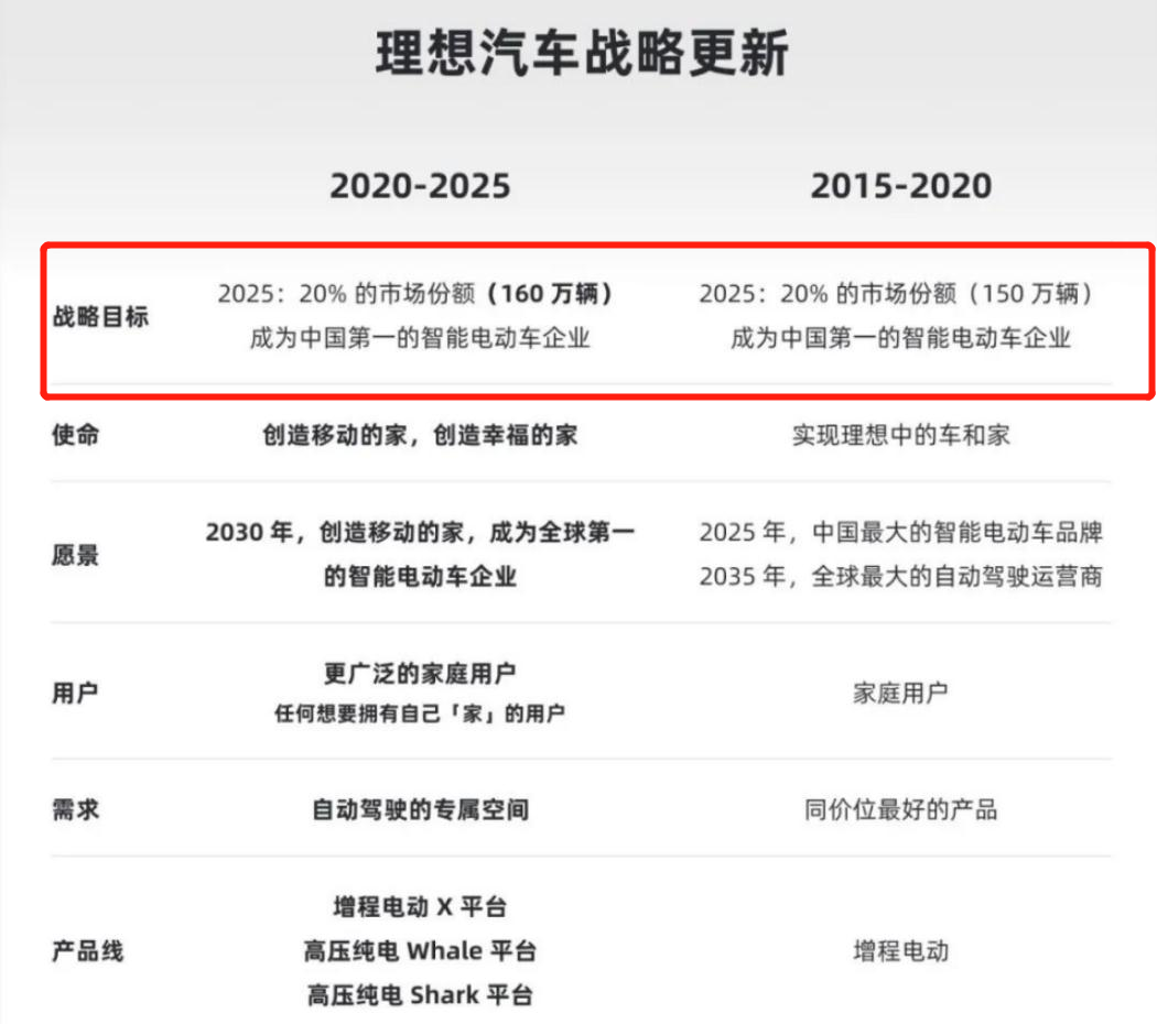 市场份额层面,理想汽车要在2025年成为国内第一;要在2030年成为全球第一,这便是理想汽车的小目标。