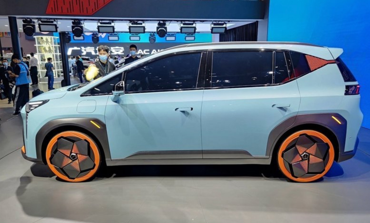 AION Y中网采用封闭式设计,下包围由银/黑/橙三种颜色搭配,颜色使用很大胆。同时,两侧L型灯组彰显了他的与众不同。这款车的轮毂采用多色五星造型,设计别出心裁,活力满满。