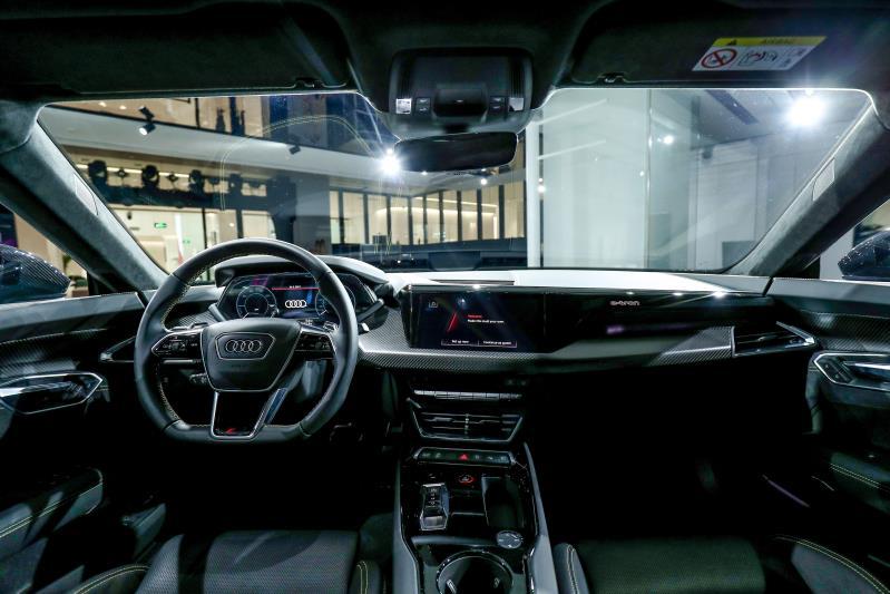 但细看到亚光碳纤维、增强氛围灯光等设计元素,会感受到一种不同于特斯拉的科技感,如果一定要用一个词来描述,用“科技奥迪”四个字最合适不过了。