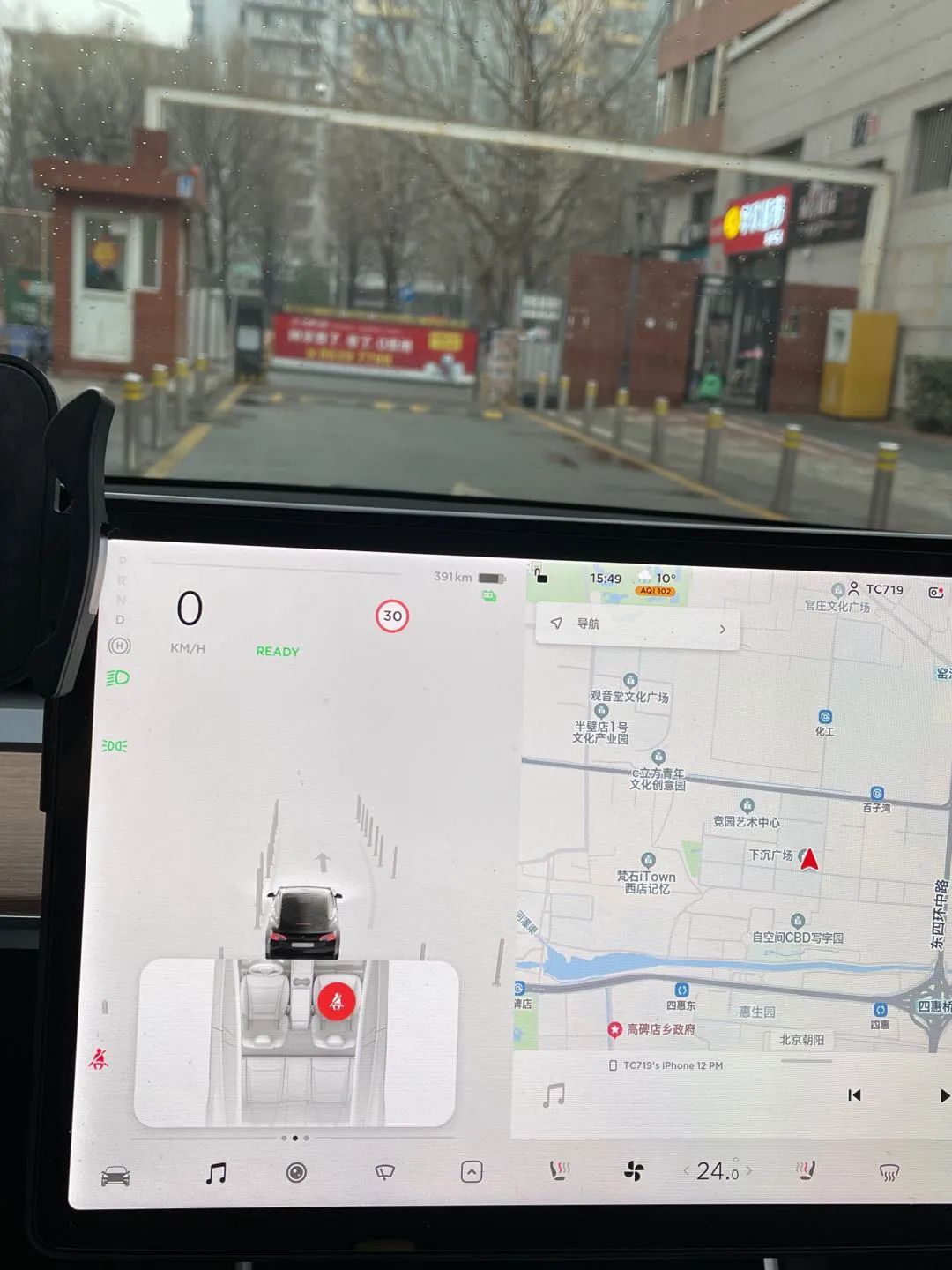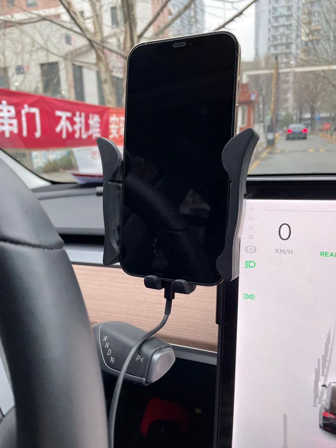 3. 如上图,我的手机放在屏幕左侧,手机充电时,充电线有时会搭在怀挡上,有时取下手机的时候,会下压到怀挡,导致车辆加速。