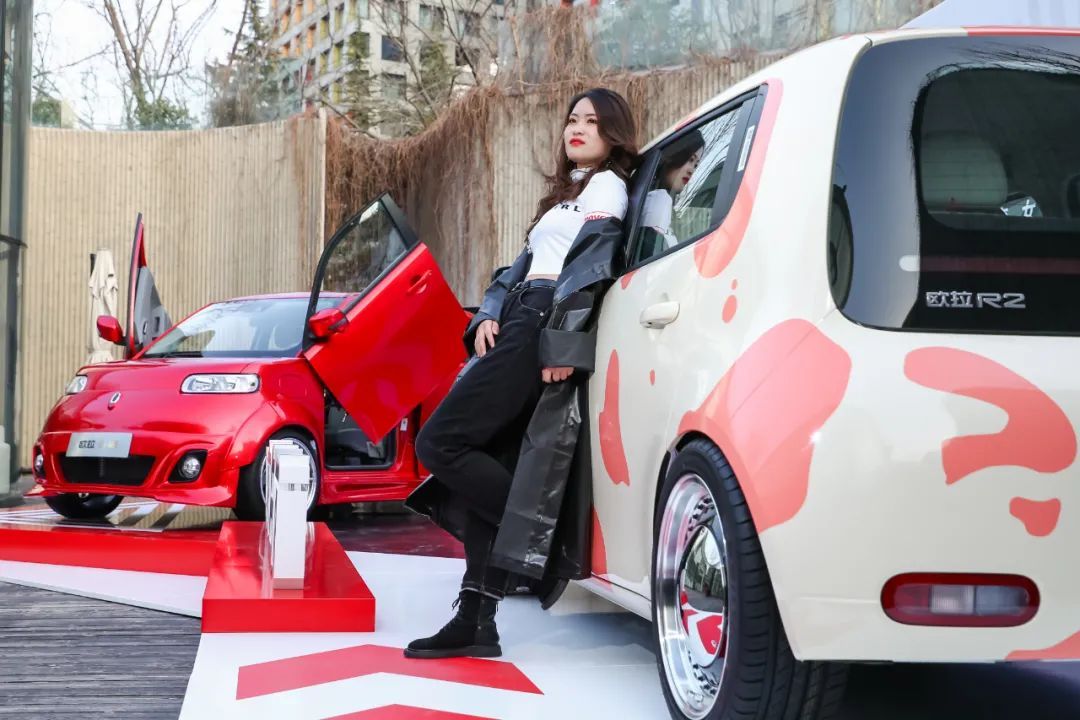 活动现场,一辆剪刀门酷炫版白猫在左,一台奶萌JDM风白猫在右,激萌酷炫的外表几乎没有女性用户可以抵抗得了。