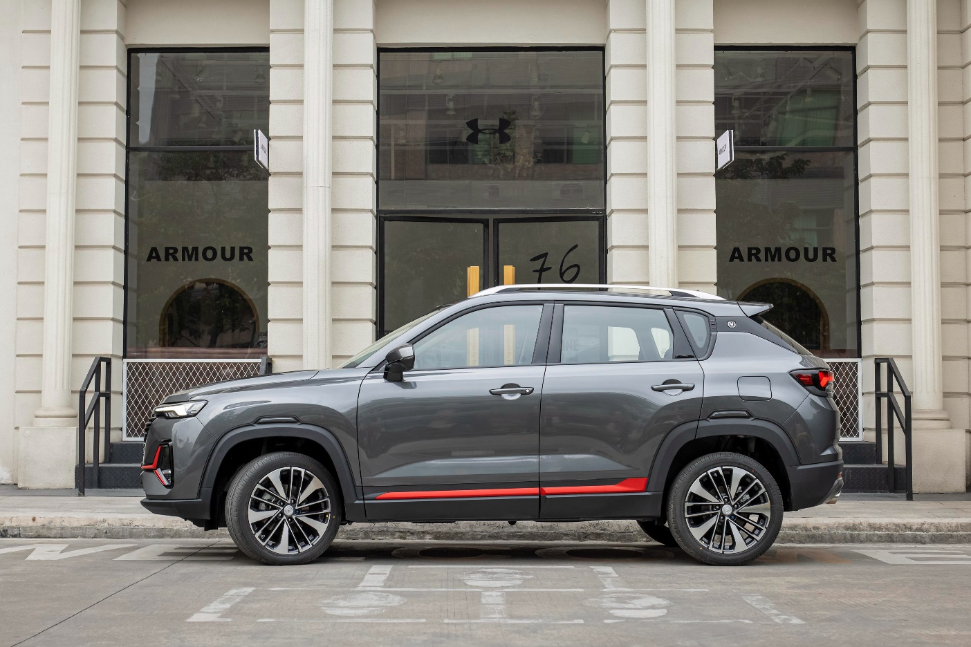车身侧面,保留了老款车型悬浮式车顶设计,看起来依旧流畅动感,新车在保险杠部分进行了重新设计,并使用了更为醒目的红色饰条元素装点。