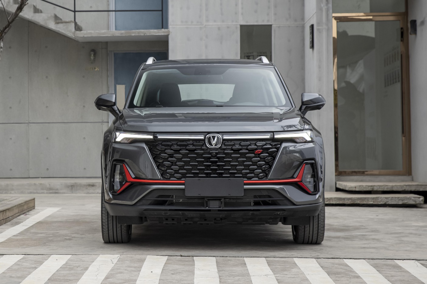 新车使用了长安最新家族式设计语言,前脸换装了大尺寸的黑武士铠甲式点阵进气格栅,配合贯穿式LED日行灯,格栅内部红色"S"以及雾灯区域的红色饰条,让整个前脸更加运动辨识度也更高了。