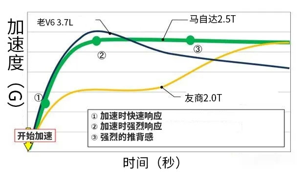 看到这,可能一些小排量涡轮增压车主就会提出质疑了:“我的涡轮车油门响应也很快啊,只需要踩下油门,变速箱一降挡,动力就爆发出来了”。但实际上,自吸引擎相对涡轮引擎的响应快,指的是发动机的扭矩响应时间。那么扭矩响应时间指的是什么呢?
