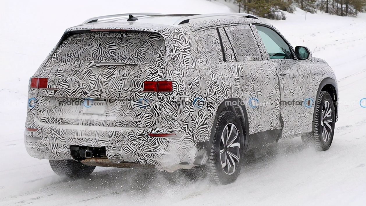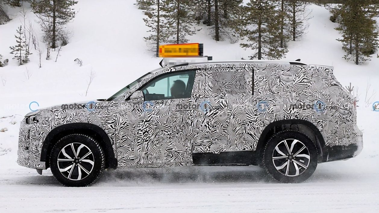 从侧面来看新车运用了大量的平直线条,锐利的腰线搭配大尺寸多辐式轮圈,整体视觉感受很硬朗,新车的车长将超过5米,预计内部将为三排座椅布局,并且将搭载奥迪最新的科技座舱,豪华感和科技感十足。