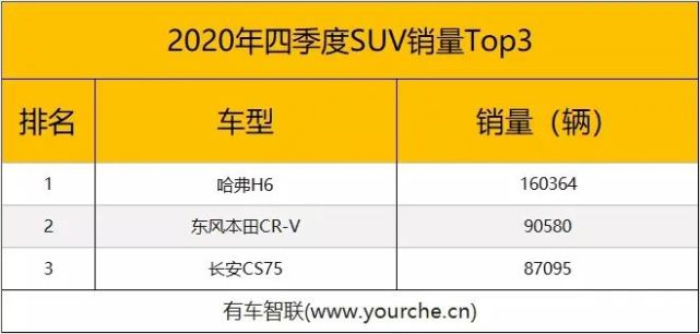 排行榜中也不乏出现了几款“零投诉”的SUV车型,比如思皓X8、炫界以及欧尚X5,出现这类似现象是由于这3款车在市场中的保有量原本就很低,投诉量自然比较少,甚至是没有。所以今天小编就从2020年第四季度SUV车型销量中,分别将SUV前3名以及豪华SUV前3名的车型单独挑出来和大家分享一下。