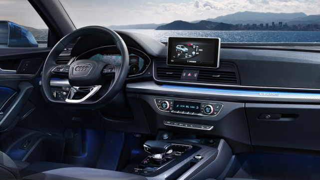 虽然外观采用了全新设计,但是奥迪Q5L内饰却保留了以往车型的整体布局,中控台采用了8.3英寸多媒体液晶屏幕,相比同级别来说,屏幕尺寸确实有些略显小气,有些不符合时下流行的趋势。虽然屏幕不够大,但是全液晶仪表盘以及电子换挡机构都为车内科技氛围提升了不少。不得不说,奥迪Q5L的整体内饰看上去还是比较年轻、时尚的。