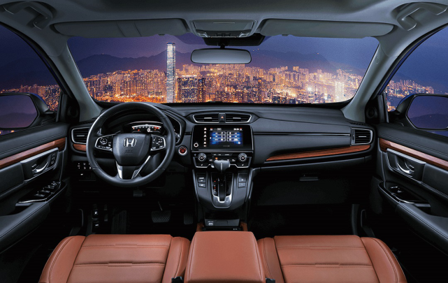 内饰方面,本田CR-V在豪华感和舒适感方面都有所提升,已经不像普遍消费者印象中的塑料感十足,不仅采用了双拼色内饰配色,还进行了大面积的软质包裹覆盖,有效提升了车内的豪华感和舒适感。本田CR-V中控采用了对称式布局,并根据不同配置搭载了5/7英寸中控屏幕,可惜的是低配版5英寸屏幕不支持触控功能。