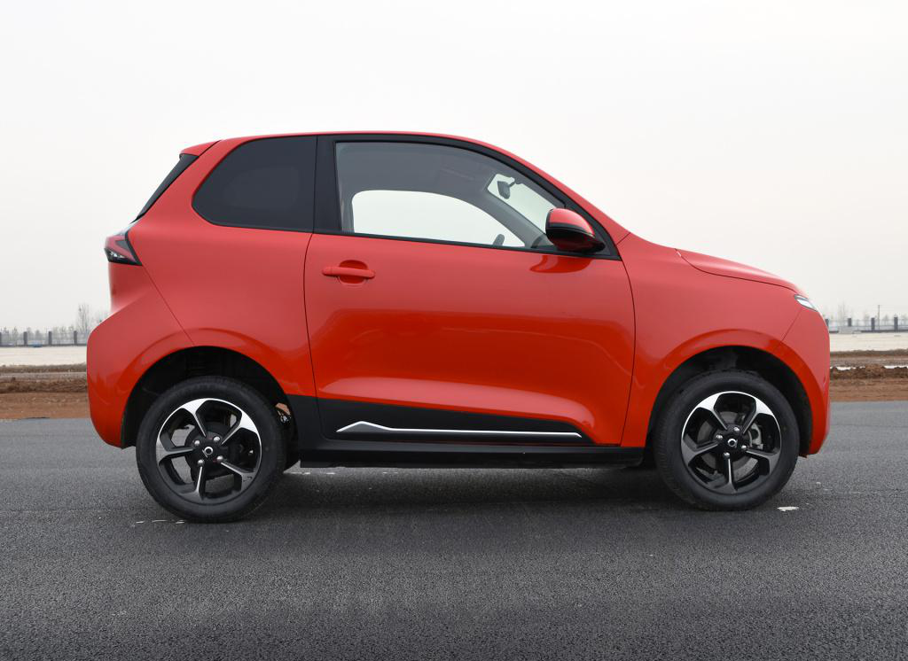 车身侧面,新车的造型看起来小巧精致。整车采用了黑红双色的拼色处理,有着一定时尚气息。而在下方,新车还配有造型类似于花瓣的五辐式轮圈。车身尺寸方面,新车的长宽高分别为3025/1500/1515mm,并采用三门两座布局。