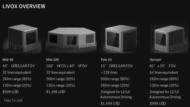 2016年,大疆内部孵化专做激光雷达的独立子公司Livox,3年之后,这一公司释放出Tele、Mid、Horizon三个系列产品。这之中,Horizon和 Tele-15 主要面向于汽车市场;Mid系列主要面向于工业,测绘、安防市场、智慧城市的市场。