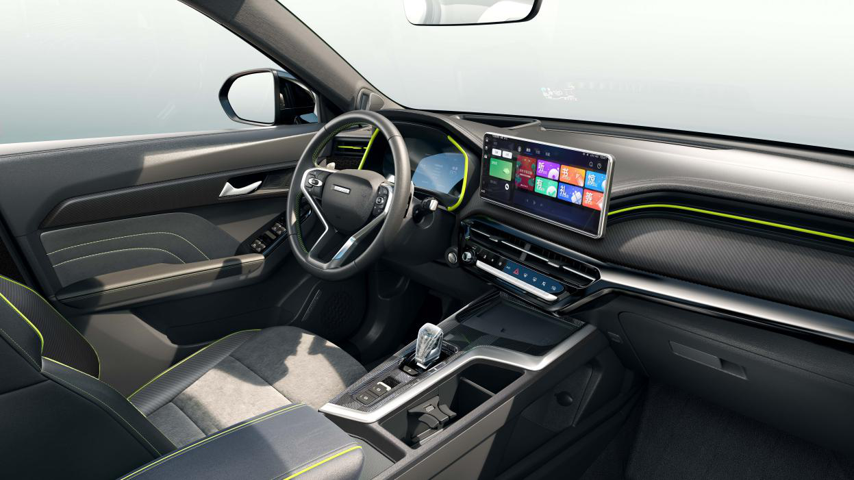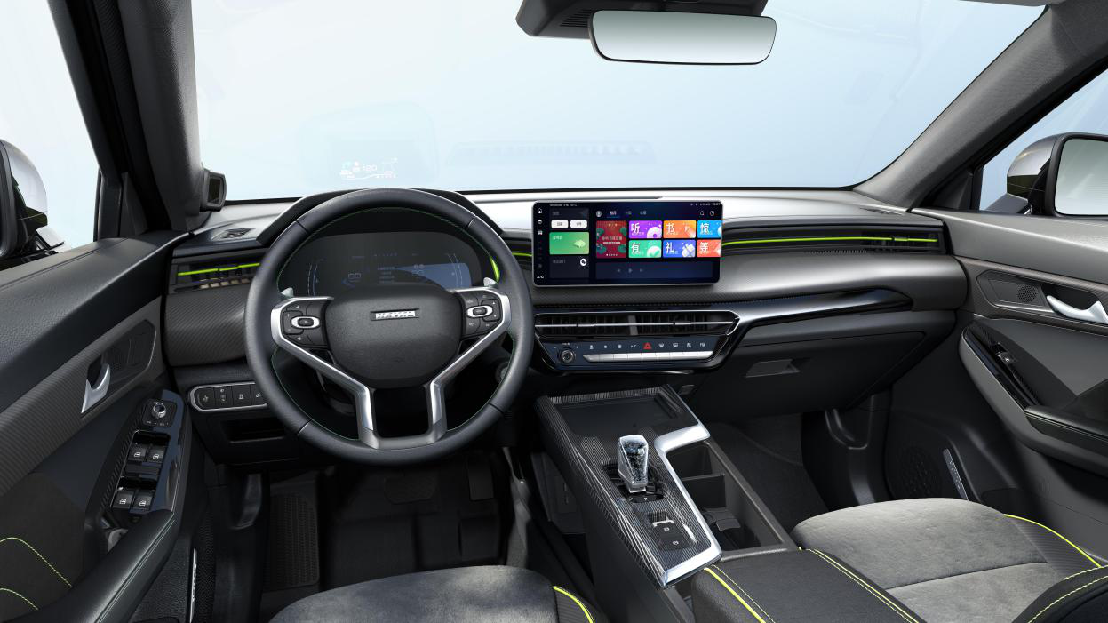 哈弗赤兔的内饰设计以战斗机座舱为设计灵感,全液晶仪表盘两侧荧光黄的装饰和战机的指示屏幕十分相似。新车搭载了同级最大的12.3英寸中控屏,这是用户与车辆的交互中心,驾驶员触控屏幕时,还会有震动反馈,这在行车操作时极大地保证了驾驶安全性。