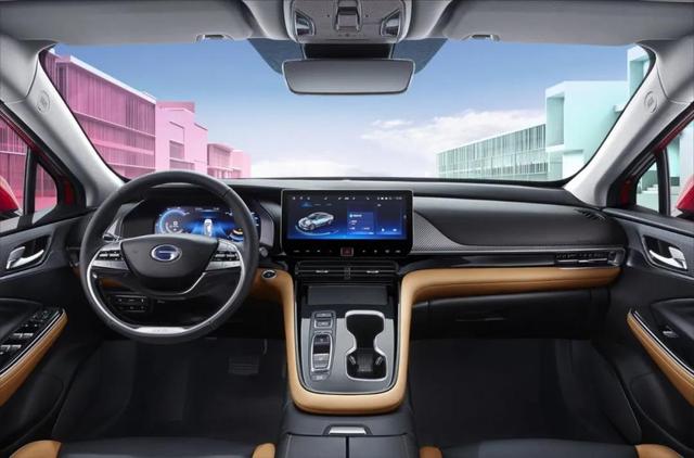 整体座舱采用了贯穿 “U型飞翼”的设计特征,配备了液晶仪表和中控大屏,均为12.3英寸。内部搭载腾讯生态车机,匹配智能车控APP,可实现远程启动车辆、开空调等等。