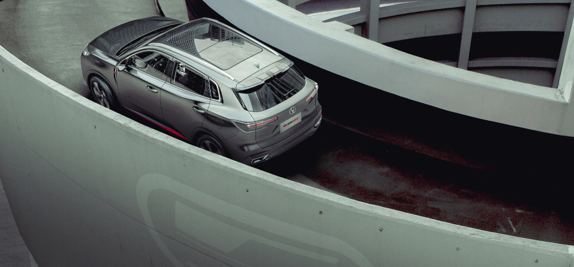 从官方图外观来看,新车前脸倒梯形开放式格栅源自建筑设计上的参数化设计手法,突显科技感与运动感,品质升级。车身侧面匹配红色饰条点缀,更有辨识度。车尾部分,新车选用饱满圆润的设计风格,取消贯穿式尾灯,进一步使车身整体简洁大方。