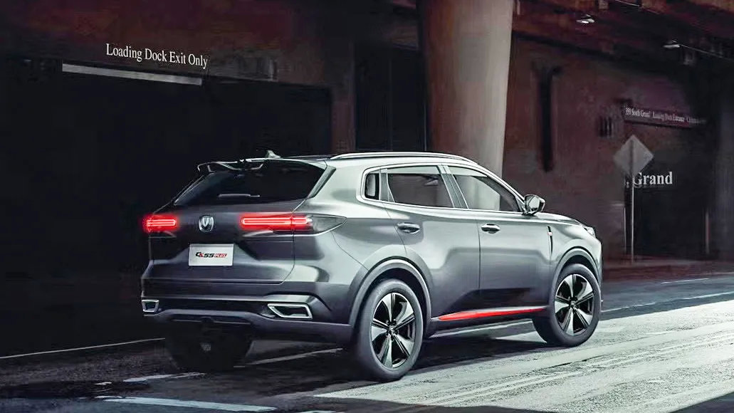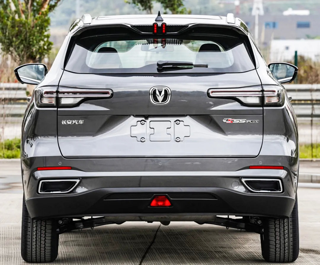 车尾同样使用了修长的小尺寸尾灯,顶部还有一个类似尾翼的运动化设计,保险杠上是两个假的镀铬排气装饰件。此外,通过车尾视角也可以看出,全新CS55 PLUS依旧使用后独立悬架设计。