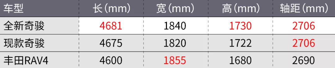 尺寸方面,全新国产奇骏车长达到了4681mm,轴距则与现款保持2706mm不变。尽管如此,奇骏的三围尺寸放在紧凑型SUV里依然算是很大的了。值得一提的是,通过轴距也不难看出,新奇骏并没有更换平台,依然使用了老款车型的CMF-C/D平台,这是雷诺日产联盟专门为中大尺寸的SUV、轿车打造的平台。除了奇骏外,全新一代逍客、雷诺科雷傲、全新三菱欧蓝德等车型都在使用这个平台。