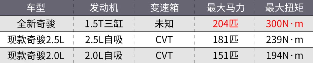 关于全新奇骏的动力系统争议就非常大了,目前新车全系仅申报了一台代号KR15的三缸1.5T可变压缩比发动机,最大功率204马力,最大扭矩300N·m。虽然参数足以秒杀现款2.5L发动机,但由于中国市场对三缸结构极其抵触,所以如果未来奇骏上市后仅提供三缸机车型的话,恐怕会在市场销量上遇到滑铁卢。